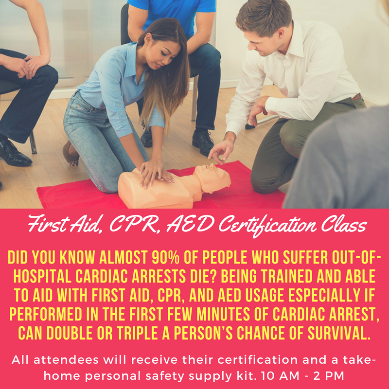 All attendees will receive their certification on-site and a take-home personal safety supply kit.